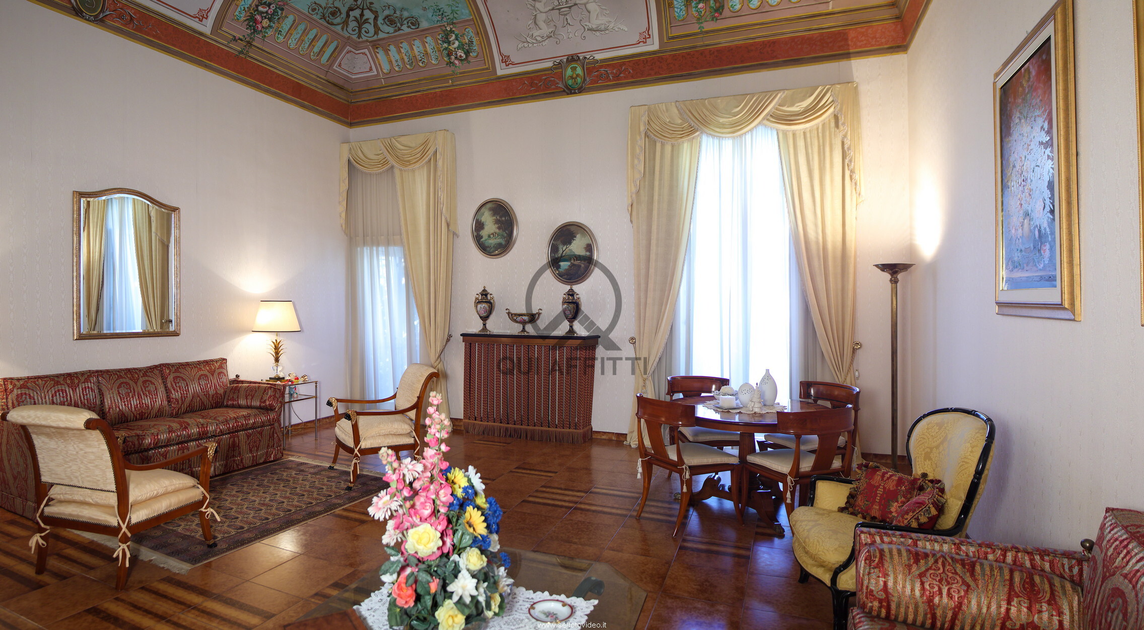 Lโimmobile , internamente dispone di ๐๐๐ ๐ฆ๐ช.ย , attualmente suddivisi in ampio ingresso , ufficio , salone con volte a botte ed affreschi risalenti ad epoche precedenti , sala tรฉ, camera da letto con cabina armadio e bagno in camera, cucina , sala da pranzo , dependance con camino , doppi servizi .